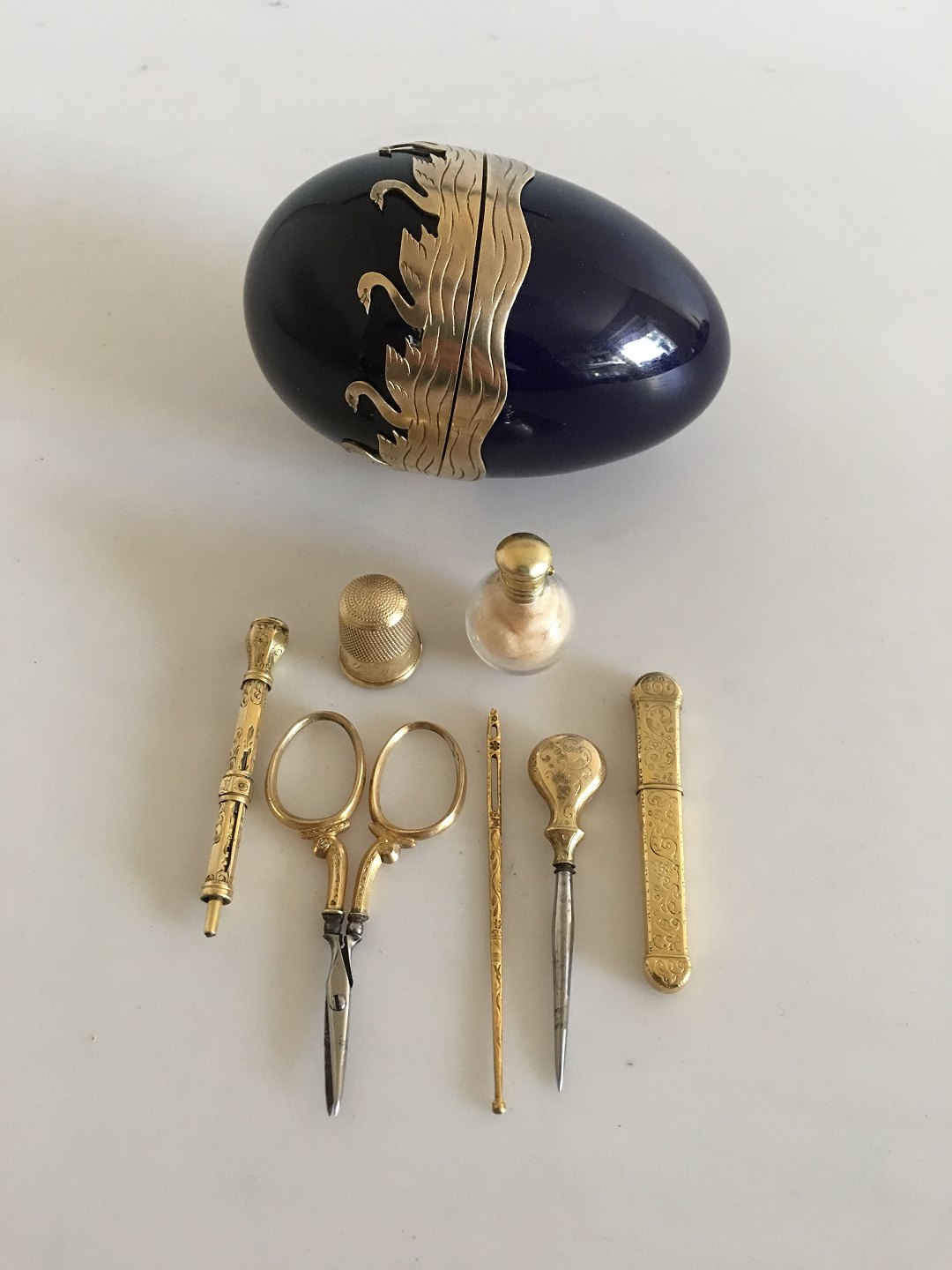 Royal Copenhagen Anton Michelsen Sølv monteret Necessaire med 7 dele. Måler 9,5cm
