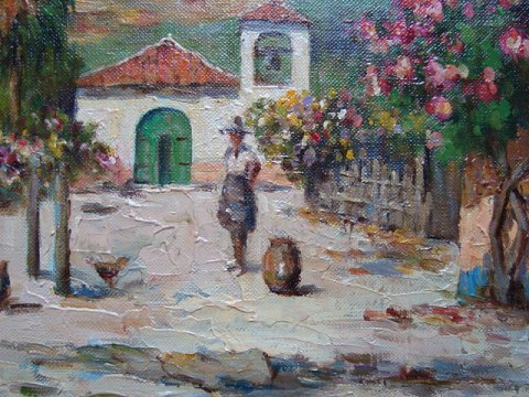 Maleri af Caprino - Sydlandsk byparti med personer.