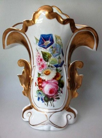 Tysk porcelæns vase o. 1900 med forgyldninger og bemalinger