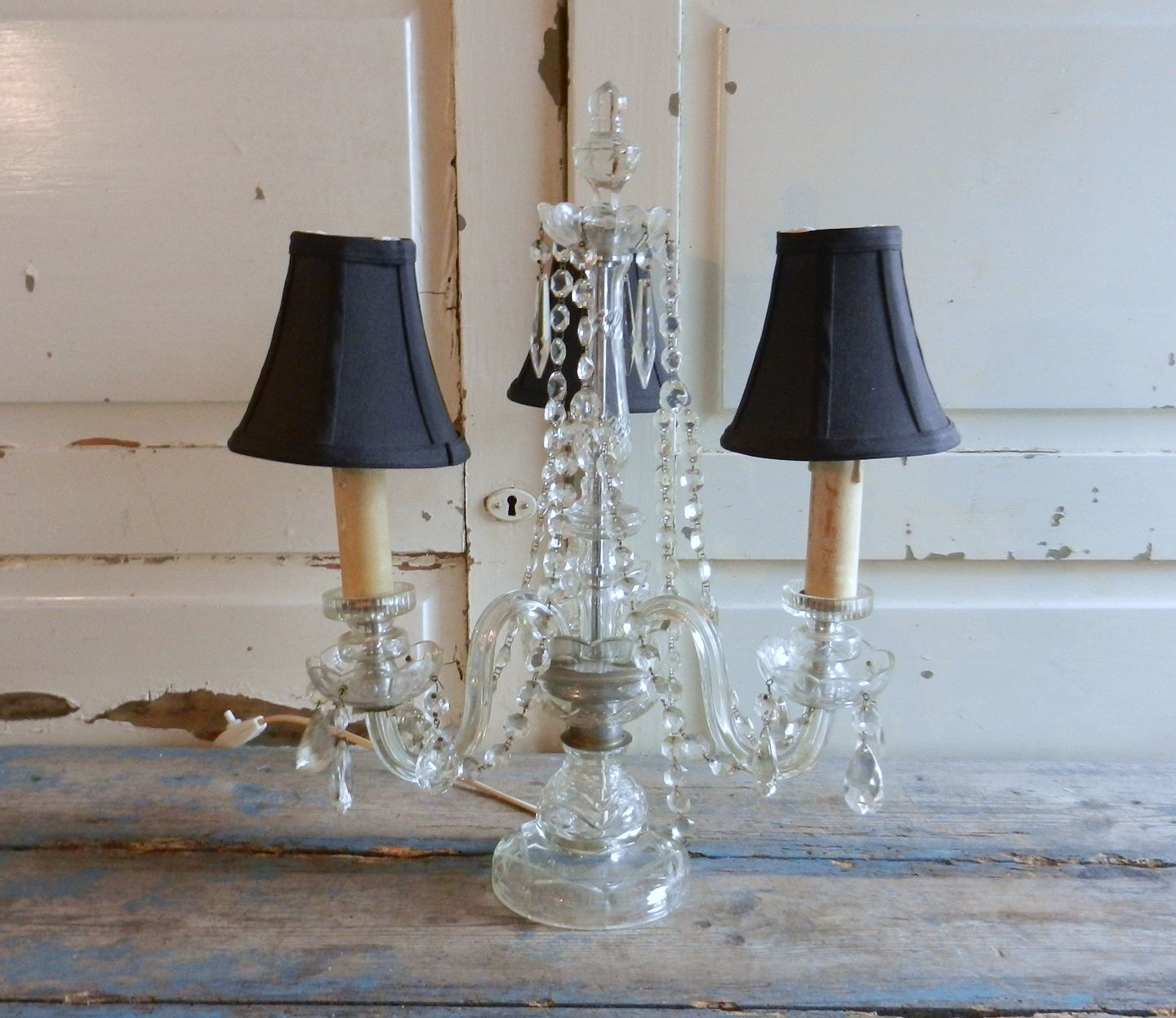 Meget flot prisme girandole med tre lysarme, monteret til el.