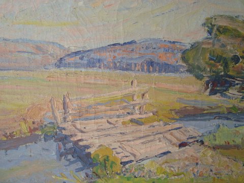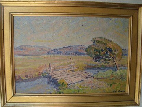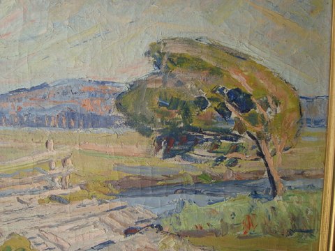Å landskab med bro og vindblæst træ 1931.