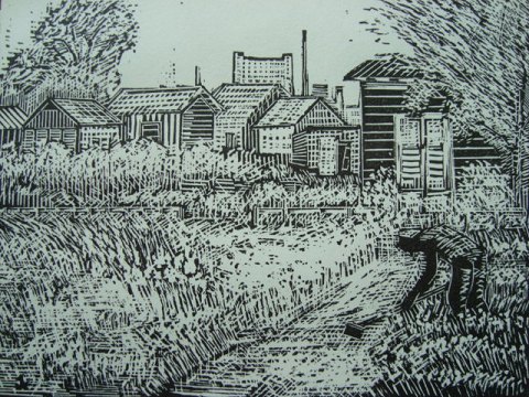 Linoleumstryk på papir.