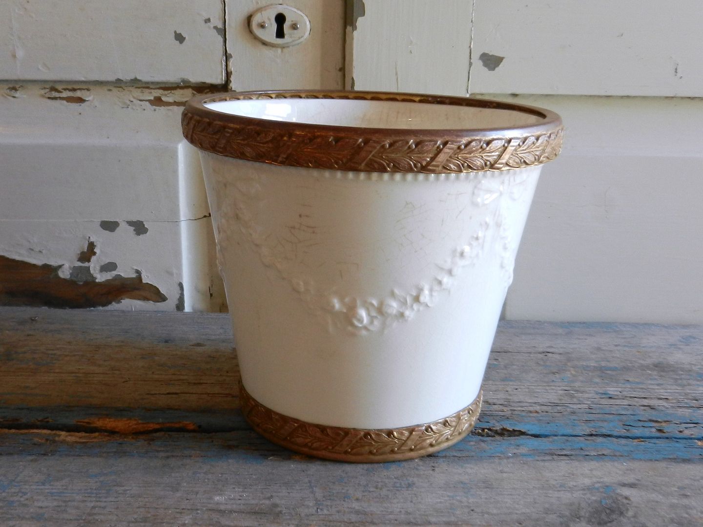 Smuk fajance urtepotte med forgyldt bronze montering.