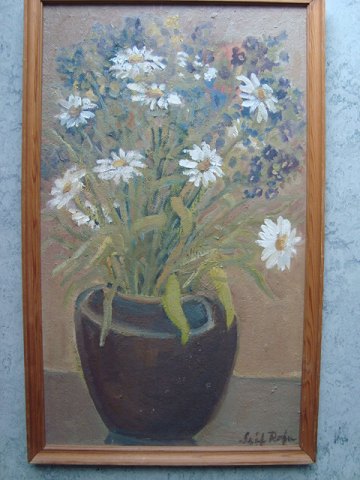 Maleri af Leif Rafn - Markblomster i vase 1967.
