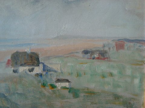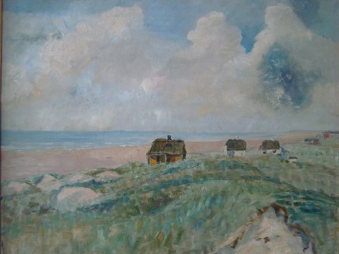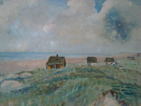 Maleri af Hugo Kongsmar - Parti fra Vestkysten med sommerhuse.
