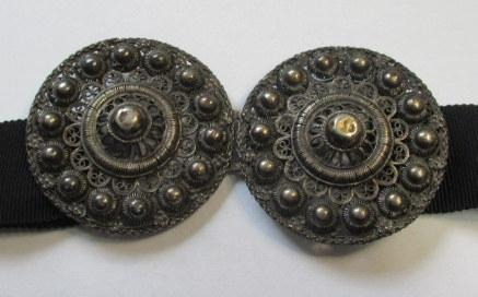Filigree buckle in silver, c. 1900. L: 9.5 cm. Dia .: 4.8 cm. No visible silver marks.