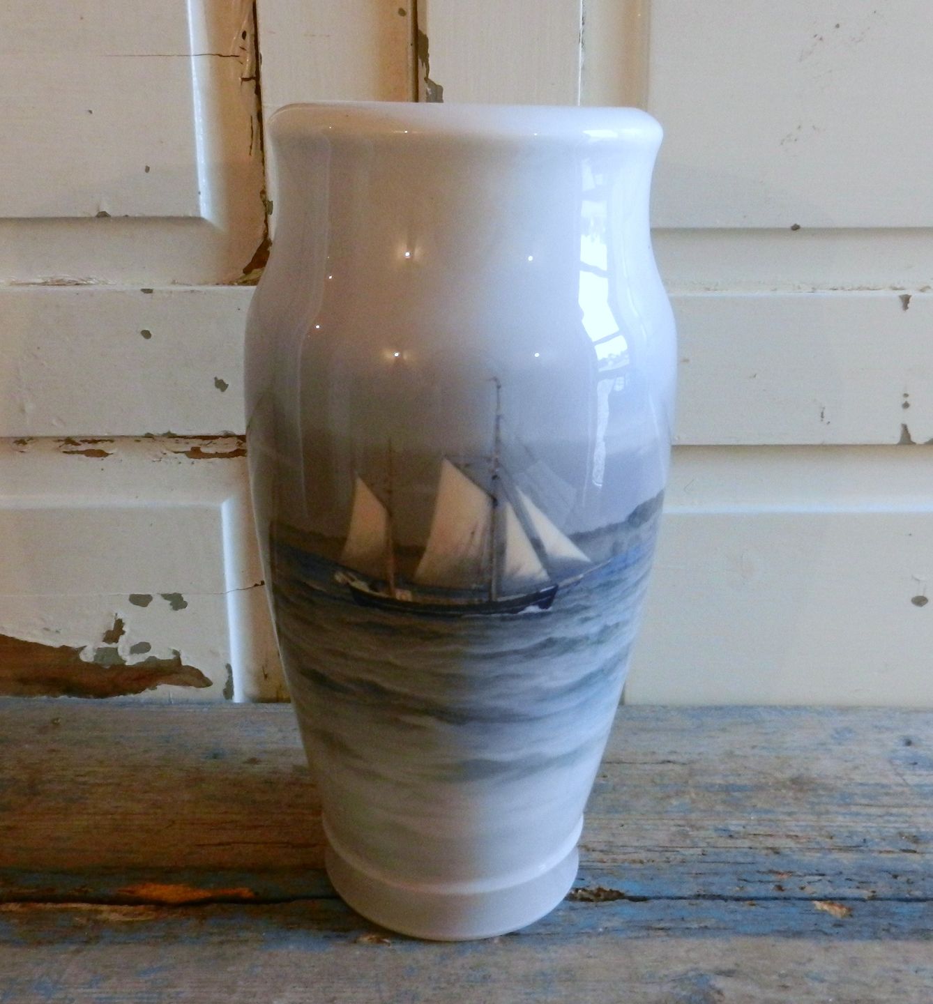Royal Copenhagen stor Art Nouveau vase med skibs motiv no. 2678/2040