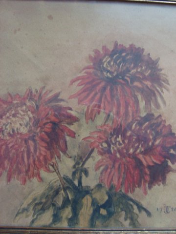 Akvarel af Charles Christensen - Krysantemer - 1921.