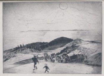 Christensen, Poul S. (1855 - 1933) Danmark: Landskab med far og søn. Radering. Signeret: Poul C 1935. 28 x 39 cm.