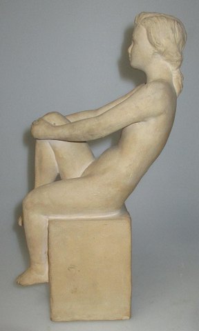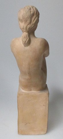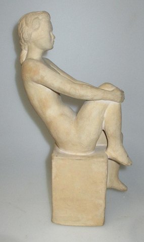 Mogensen, Jørgen (1927 -) Denmark: Seated nude woman. Signed .: Jorgen M 44. H .: 24.5 cm. Stamped .: NoBo.