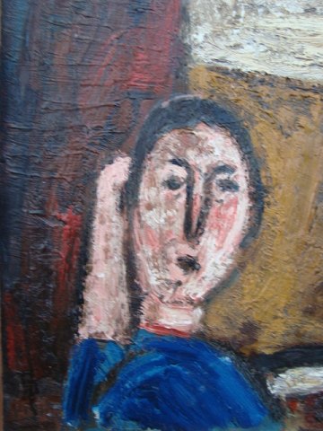 Bagpå - "Figur i blåt ved vindue" - "Peder Brøndum Sørensen 1967"