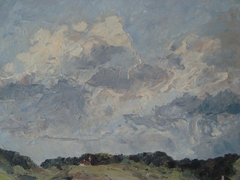 Maleri - Carl Johan Tandrup - Parti fra Rebild Bakker med Top Karens Hus og Blokhuset.