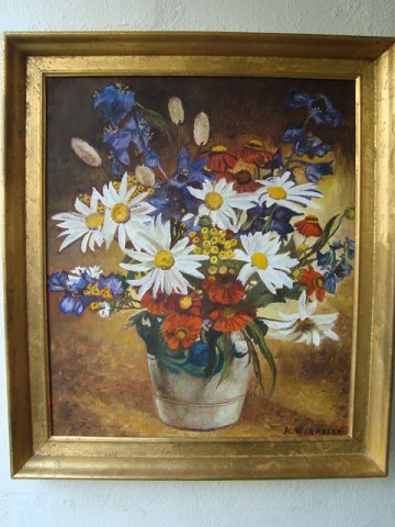 Maleri af K. Wikkelsø - Blomsterbuket i krukke.