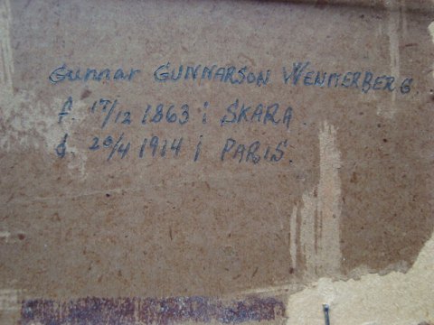 Bagpå plade tilskrevet Gunnar Gunnarson Wennerberg.