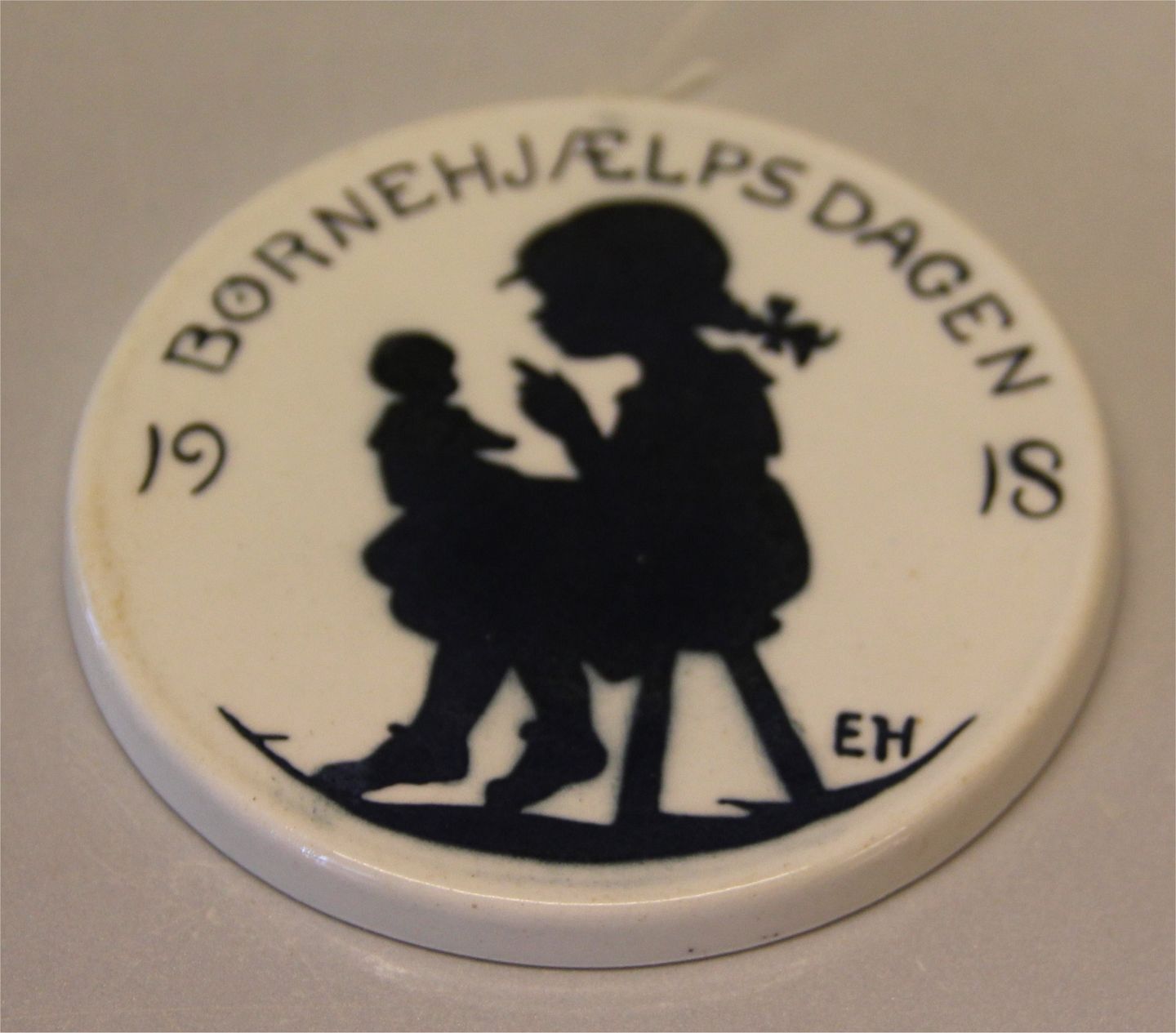 1918 b Pige med dukker Else Hasselriis 8,7 cm Royal Copenhagen Aluminia fajance Børnehjælpsplatte