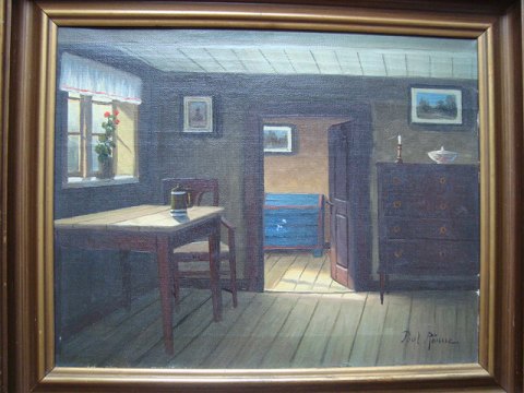 Maleri af Frederik Drews - "Interiør" - signeret med pseudonymet "Poul Rönne"