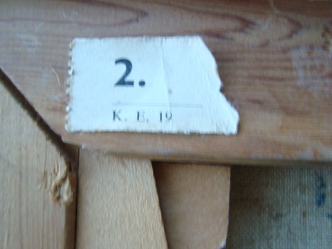 Rester af udstillingsmærkat fra Kunstnernes Efterårsudstilling bagpå som no. 2.