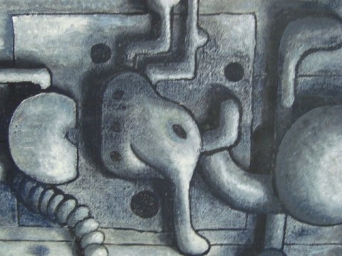 Maleri af Paul Henning Kerber - Inde i Godsvognen.