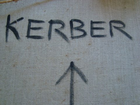 Udstillingsmærkat fra Kunstcirklerne med tilen - Inde i Godsvognen.