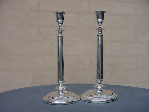 Pair of plated candlesticks from Denmark. Approx. 1900. Resilvered. Height: 25 cm.