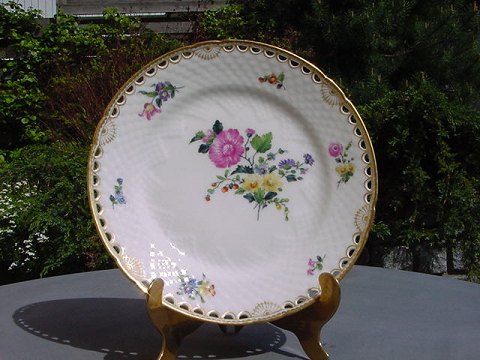 Bing & Grøndahl tallerken i Saksisk Blomst. Gennembrudt kant. Ca. 1930. Diameter: 19 cm.