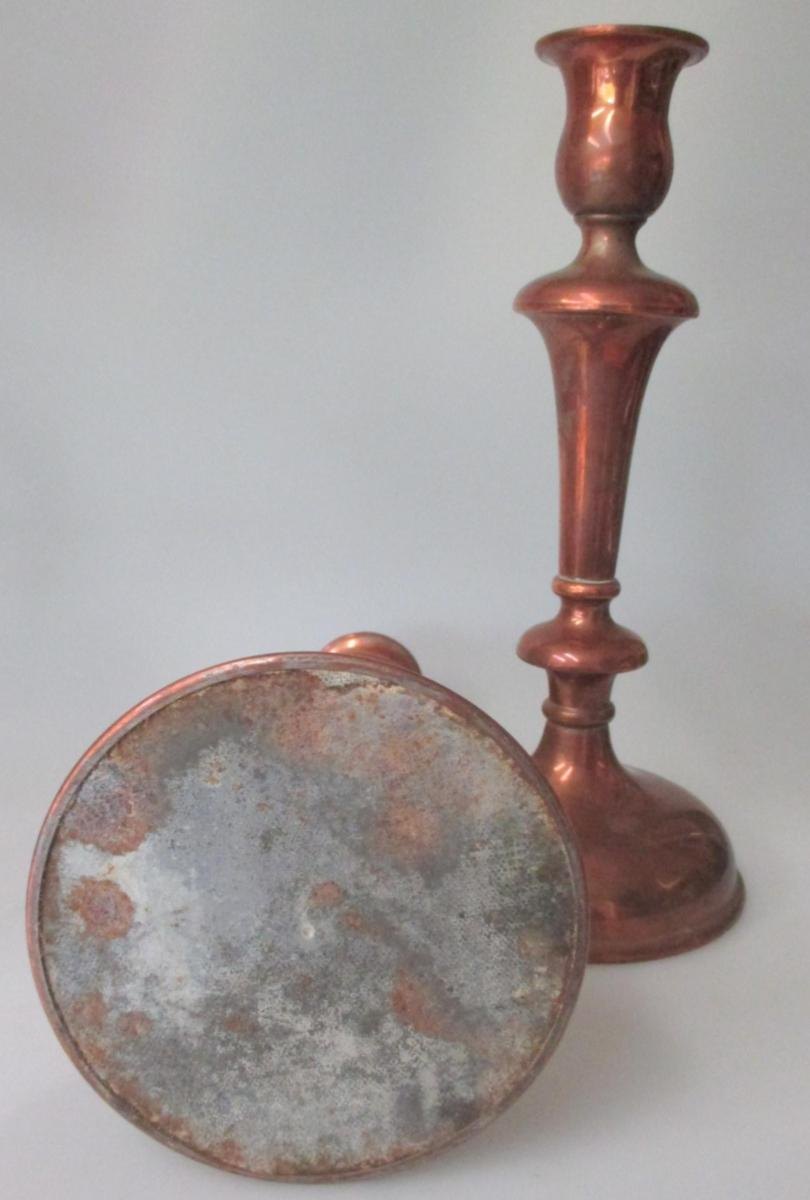 Pair of antique copper candlesticks, Denmark, 19th century.