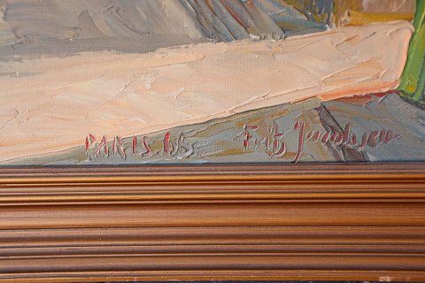 Gademotiv. Maleri på lærred. Signeret "Fritz Jacobsen". (1914-79)