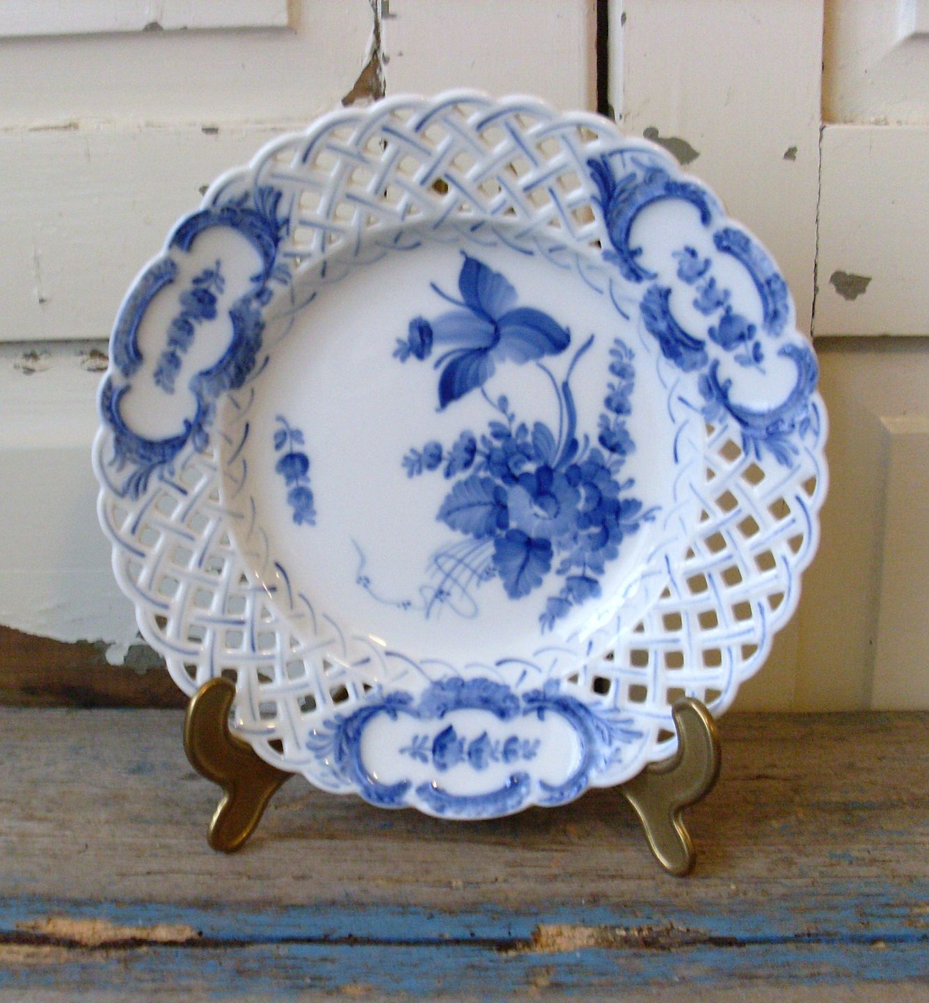 Royal Copenhagen Svejfet Blå Blomst tallerken med gennembrudt kant no. 1636