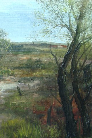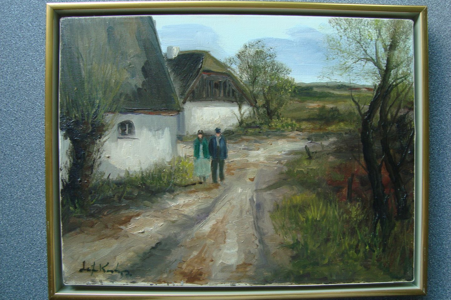 Maleri af Leif Kastrup - Gårdparti med personer.