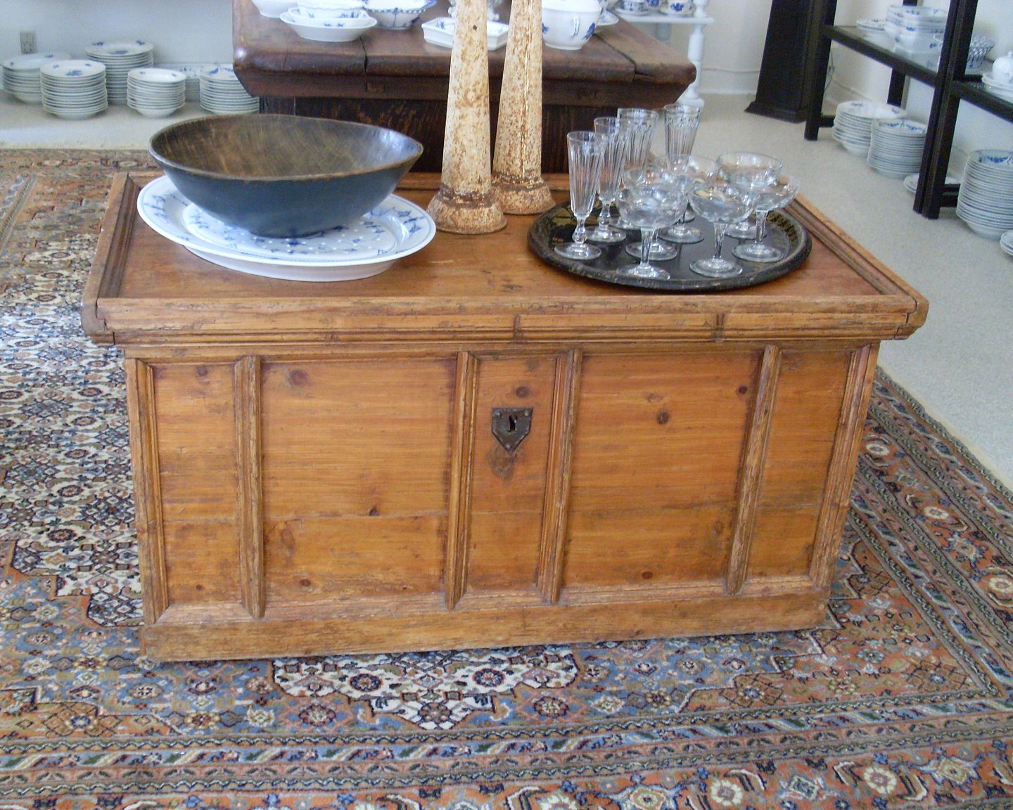 Smuk svensk kiste i fyrretræ med fladt låg perfekt som sofa bord.