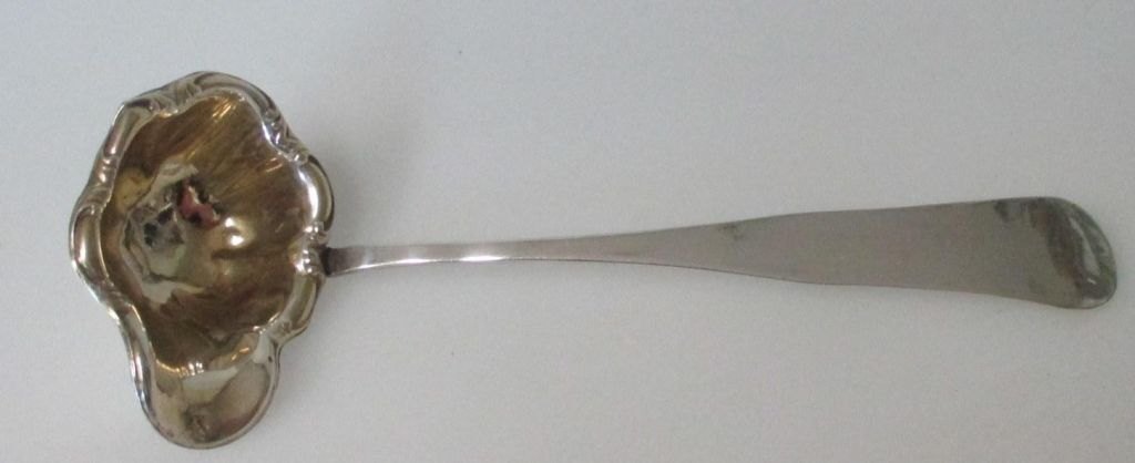 Flødeske i sølv, Ubekendt mester i Haderslev, 19. årh. Danmark. Indvendig lueforgyldt. L.: 16 cm. Stemplet: J.E og med Haderslev Bymærke. Vægt.: 22 gram.  Proveniens.: Konsul Dam, Aabenrå, Danmark.