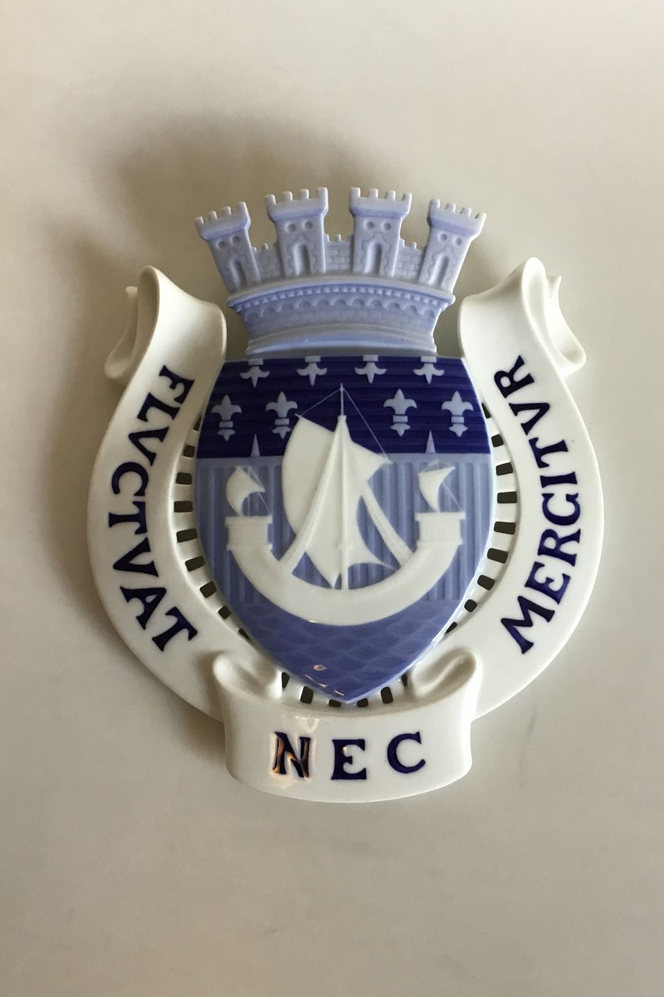 Bing & Grøndahl Mindeplatte fra 1899 BG-CM12. Paris's by Våben. Brugt til verdensudstillingen i Paris 1900 på Bing og Grøndahl Stand. Måler 26 cm