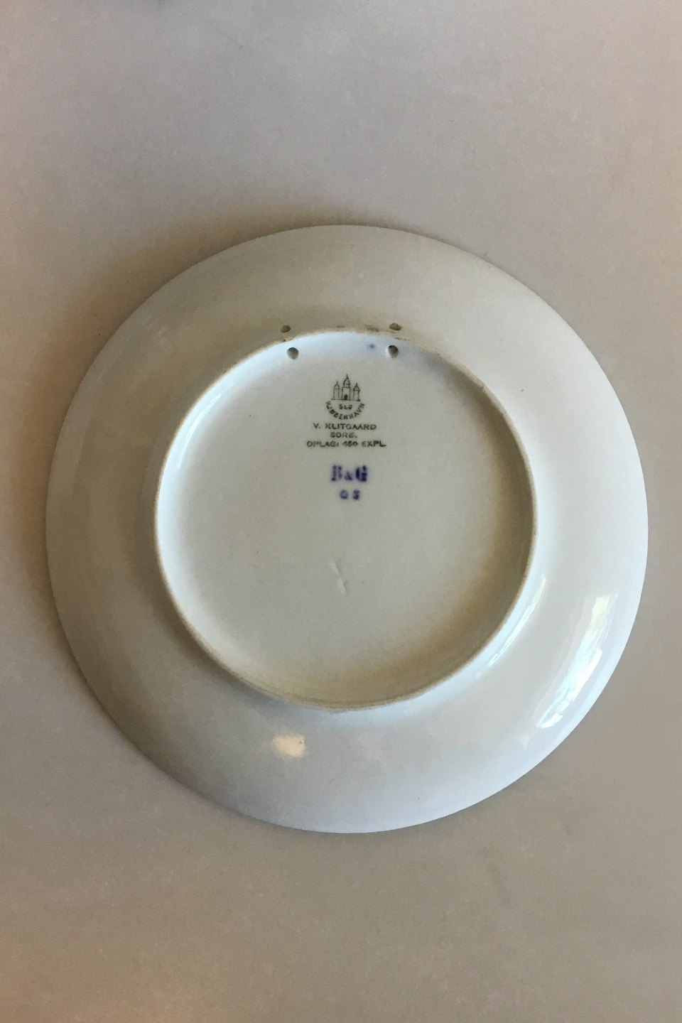 Bing & Grøndahl Mindeplatte fra 1909 BG-CM32. Måler 20,5 cm. Designet af Jens Peter Dahl Jensen. Lavet i 450 kopier. Herlufsholm / Klitgaard Sorø.