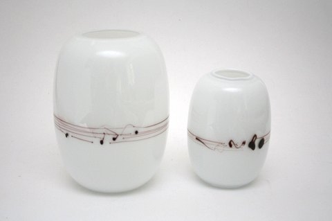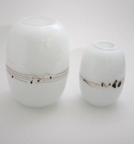 Holmegaard, Melody vaser designet af Michel Bang i 1983. Opalhvid glas med pålagte tråde og dråber, så det ligner noder.