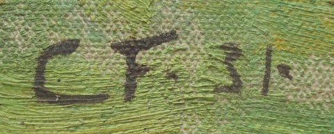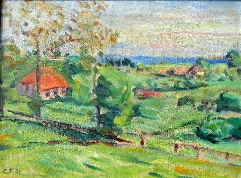 Forup, Carl (1883 - 1939) Danmark: Landskab - sommer. Sydfyn. Olie på lærred. Signeret: Monogram CF 31. 30 x 40 cm. Skitse.