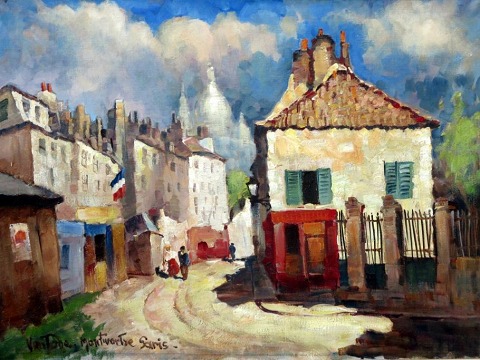 Vantore, Mogens (1895 - 1977) Danmark: Mont Martre, Paris. Olie på lærred. Signeret.: Vantore. 55 x 72 cm.
