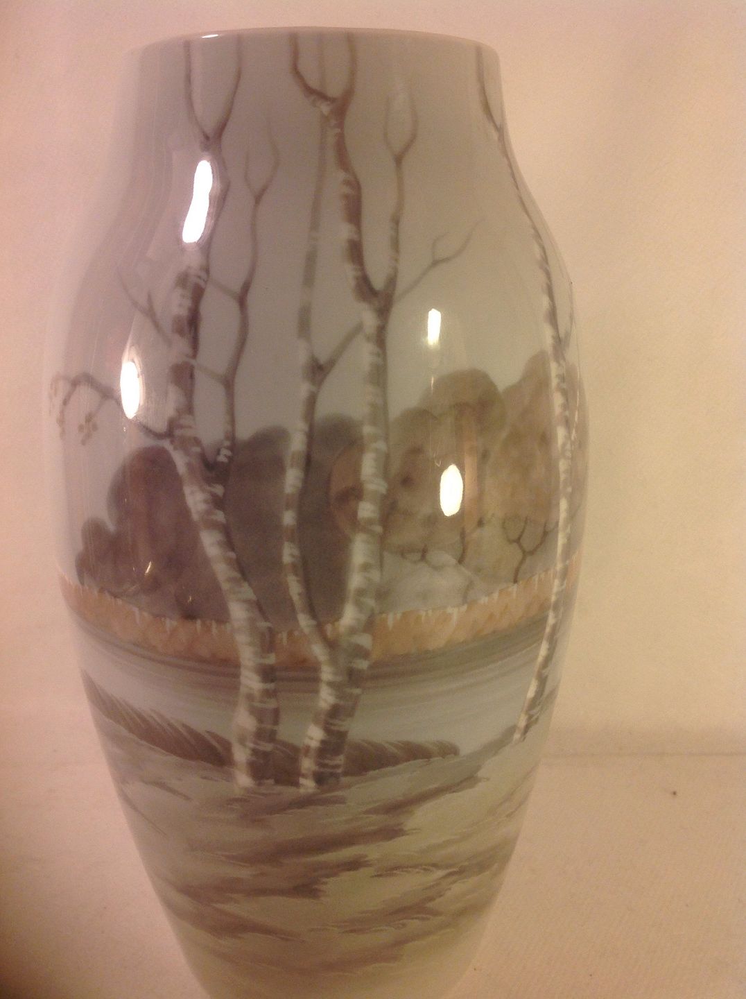Vase med landskab og birketræer.