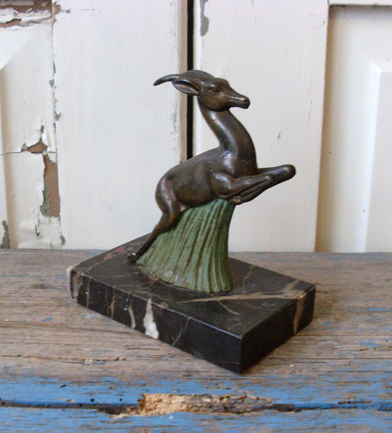 Art Deco brevpresser i form af spring buk monteret på marmorplade