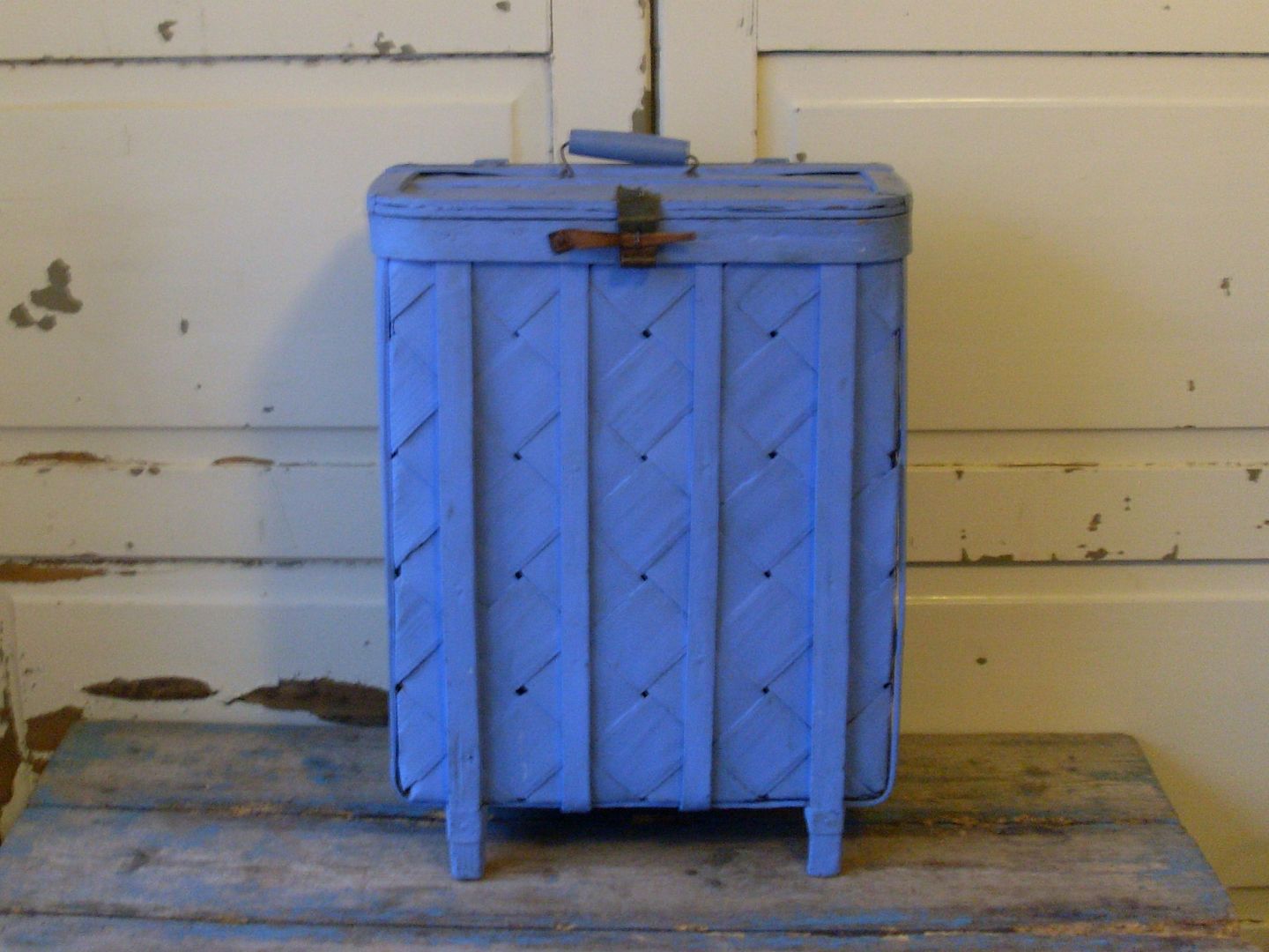 Stor svensk bærplukker kurv, monteret med remme så den kan bæres på ryggen.