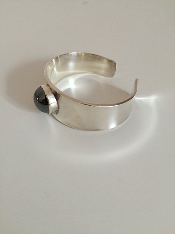 Georg Jensen Sterling Sølv Paul Hansen Armring No 188. Prydet med cabochonslebet hæmatit. Fra efter 1945.