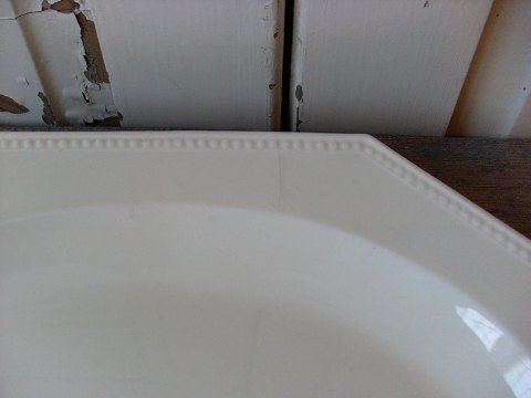 Smukt Fransk sekskantet fajance fad med perlekant.
