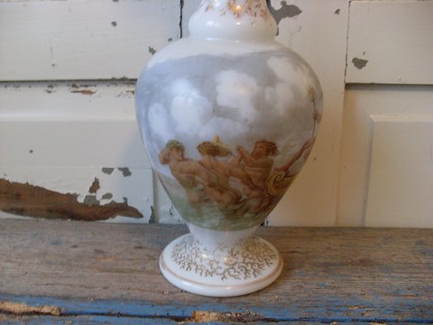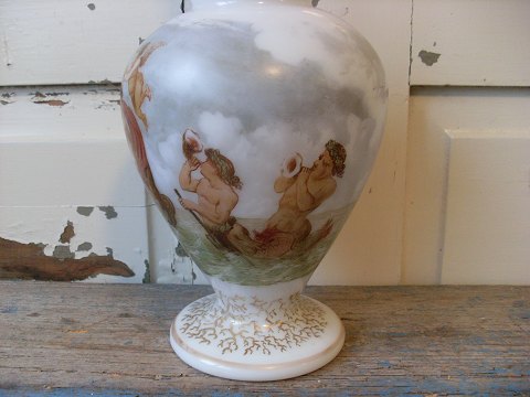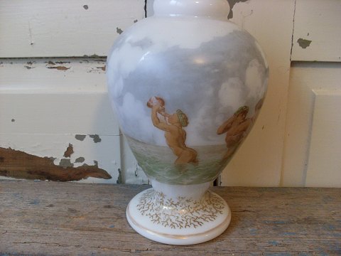 Stor opaline vase smukt dekoreret med Kong Neptun og nøgne havmænd.