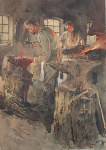 Wolf, Georg (1882 - 1965) Tyskland: Fra en smedje.