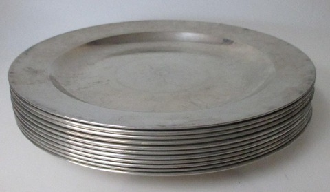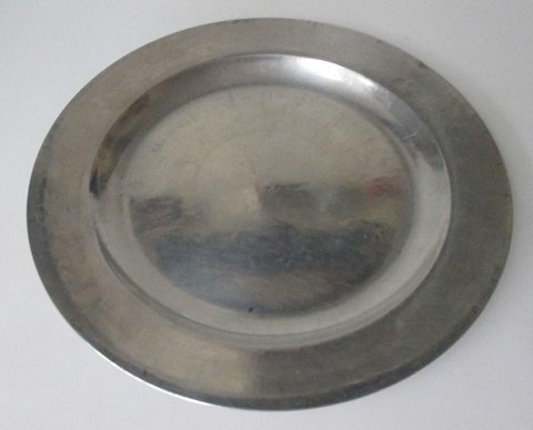 11 svenske tin dække tallerkener, 20 årh. Sverige. Stemplet.: A. B. Gamla Santessonska Tenngjuteriet, Stockholm, Sverige. F 7, 714. Dia.: 23 cm.
