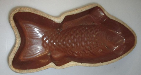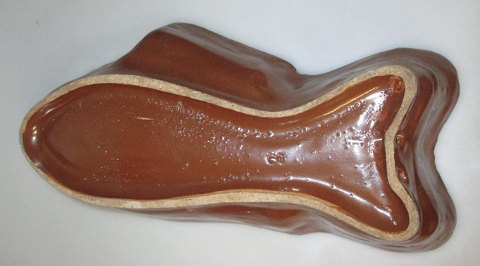 Fiske form, 19. årh. Slesvig - Holsten. Brunglaseret lertøj. L.: 35,5 cm. Under bunden nummereret med no. 3.