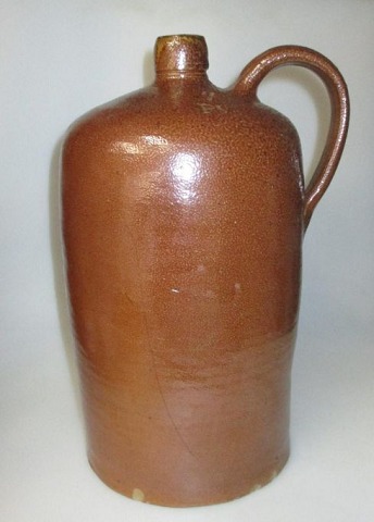 Antik brændevins dunk, i saltglaseret stentøj, 19. årh. Slesvig - Holsten. Med hank. På kurpus anført indholdende: 4 Pt (Pot). H.: 30 cm.