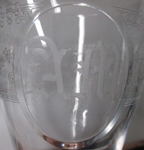 Krystal pokal, omkring 1900. Med slibninger på stilk og kumme. Med indgraveringen: A.M. H.: 25 cm.