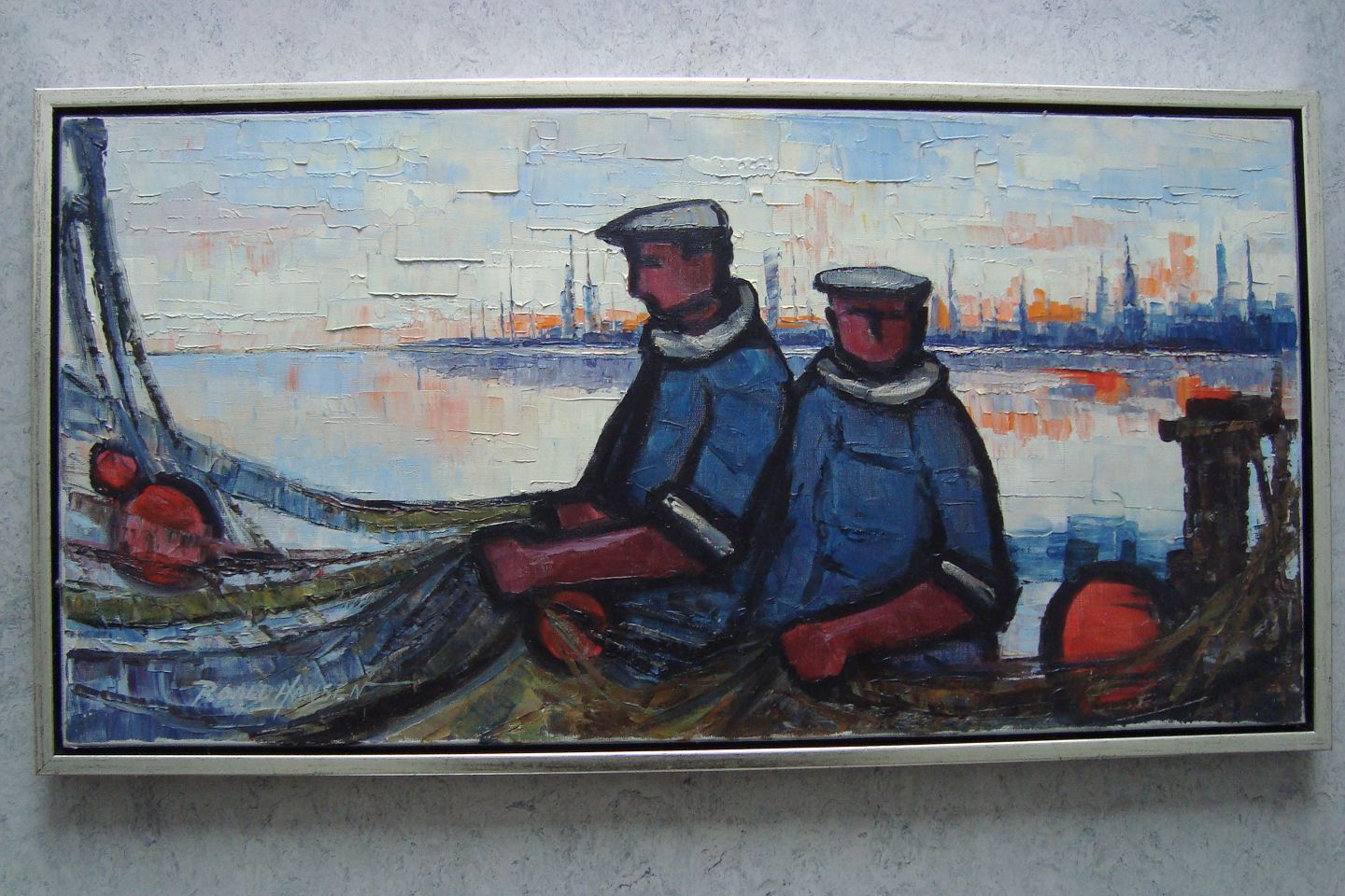 Maleri af Roald Hansen - Fiskere røgter garn.