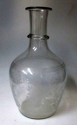 Svensk vand karaffel med ætset motiv af hjort, 19. årh.