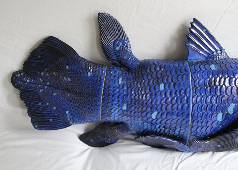 Den Blå Fisk af Jeanne Grut, Aluminia 3239 Blå Fisk Fajance 118 cm lang (lige version) Jeanne Grut 1963 1060311
